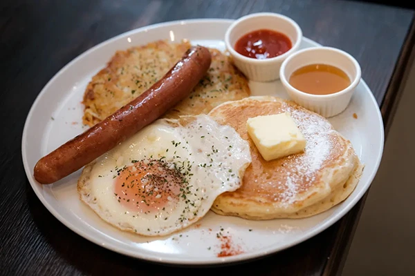 店内では自家焙煎した豆を使ったスペシャルティコーヒーと、バターミルクを用いたパンケーキやフライドチキン、ポテト料理のハッシュブラウンなどを合わせたモーニングプレートを提供しています。