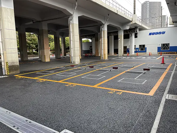 団地に隣接する駐車場として、視認性や使いやすさを確保するため、車室ラインは月極区画と異なる色で引き直し、誤認を防止する施策を実施。看板の配置や文言にもこだわり、駐車エリアと精算機の間に利用方法の看板を掲示することで、適切なスペースを確保し、精算機との接触リスクを軽減しています。こうした工夫によって、安全でストレスのない利用環境が整えられています。